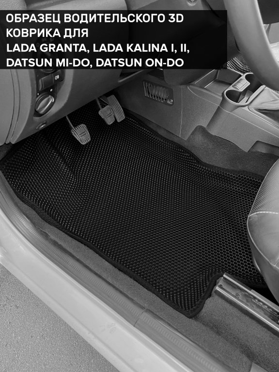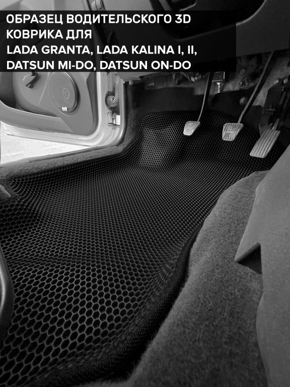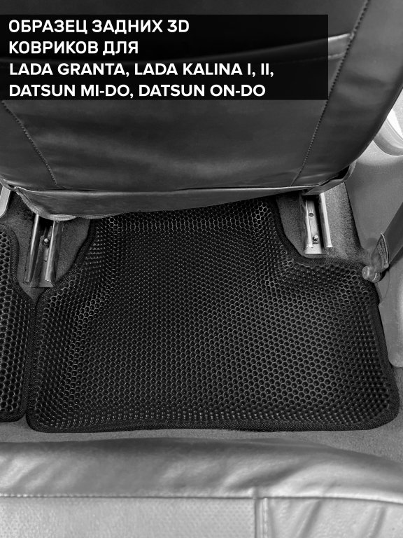 Автомобильные 3д коврики для Datsun mi-DO (2015-2020) в салон авто и багажник сделаны из инновационного полимерного материала EVA, изысканная структура в виде ячеек не дает воде, пыли и снегу разлетаться по салону машины и багажнику. 3д коврики зафиксированы на полу определенными клипсами, соответствующими Datsun mi-DO (2015-2020), и не двигаются в процессе езды.