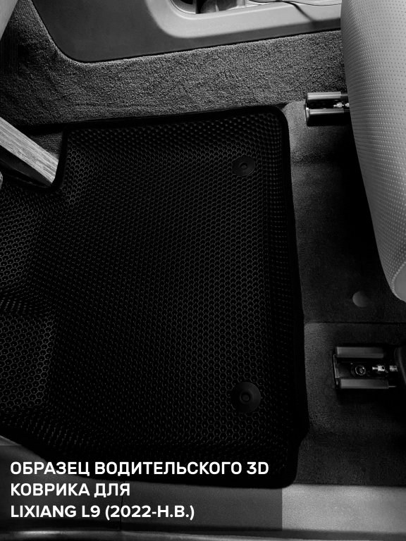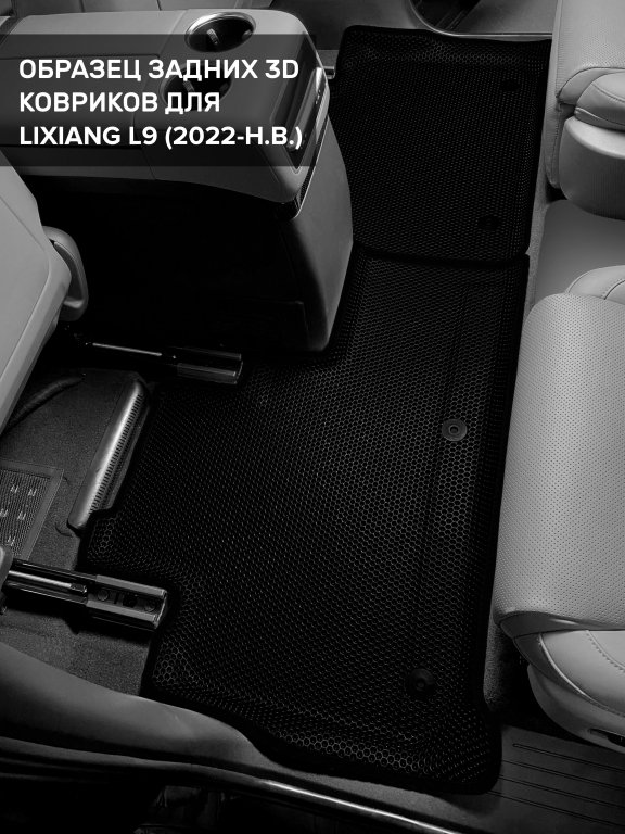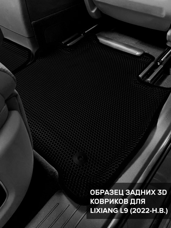 Автомобильные 3д коврики для LiXiang L9 7 мест (2023-н.в) в салон авто и багажник сделаны из инновационного полимерного материала EVA, изысканная структура в виде ячеек не дает воде, пыли и снегу разлетаться по салону машины и багажнику. 3д коврики зафиксированы на полу определенными клипсами, соответствующими LiXiang L9 7 мест (2023-н.в), и не двигаются в процессе езды.