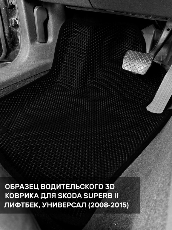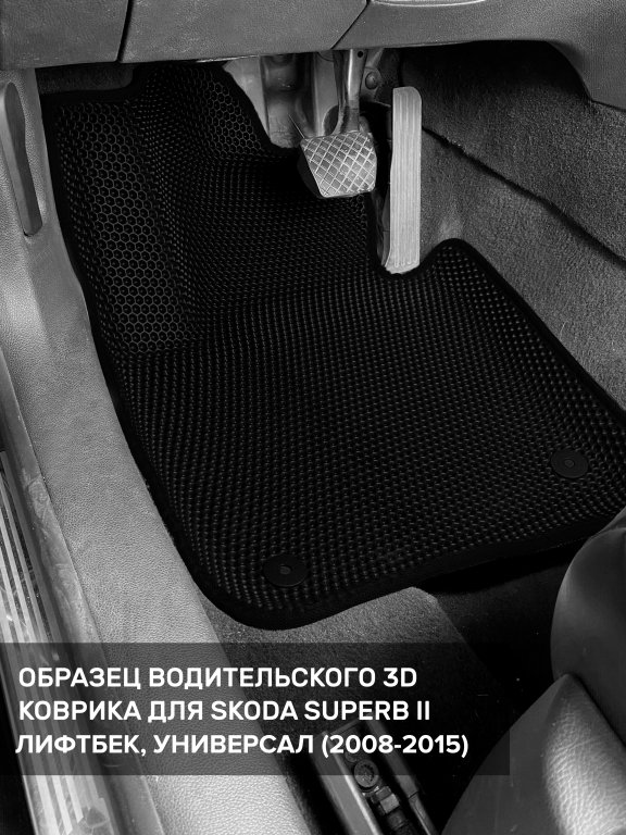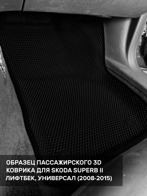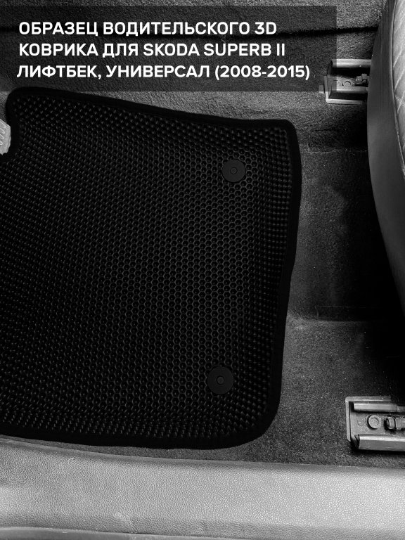 Автомобильные 3д коврики для Skoda Superb II (2008-2015) в салон авто и багажник сделаны из инновационного полимерного материала EVA, изысканная структура в виде ячеек не дает воде, пыли и снегу разлетаться по салону машины и багажнику. 3д коврики зафиксированы на полу определенными клипсами, соответствующими Skoda Superb II (2008-2015), и не двигаются в процессе езды.