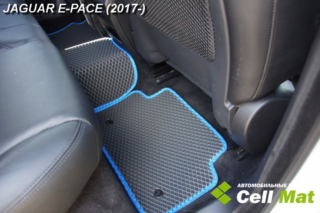 Автомобильные коврики для Jaguar E-Pace (2017-н.в.) в салон авто и багажник сделаны из инновационного полимерного материала EVA, изысканная структура в виде ячеек не дает воде, пыли и снегу разлетаться по салону машины и багажнику. Автоковрики зафиксированы на полу определенными клипсами, соответствующими Jaguar E-Pace (2017-н.в.), и не двигаются в процессе езды.